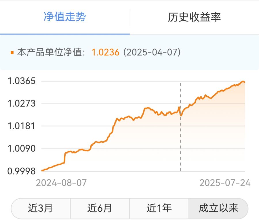 從凈值走勢來看,6月份以來該產品凈值以向上攀升為主。近1個月收益表現較佳,實現4.22%的年化收益率,近6個月收益表現一般,年化收益率為2.84%。