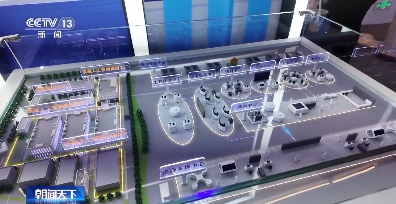 這是全球首個(gè)具備工業(yè)化、標(biāo)準(zhǔn)化、規(guī)模化生產(chǎn)能力的人工智能生產(chǎn)流水線的沙盤。這不是普通的智能工廠,而是專門生產(chǎn)大模型的工廠。它的每一個(gè)業(yè)務(wù)中心就相當(dāng)于一個(gè)車間。目前這個(gè)人工智能工廠已經(jīng)在山東濟(jì)南完成了實(shí)體化建設(shè),開始運(yùn)行投產(chǎn)。